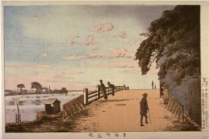 A samurai named Hattori lived in the Ushigome area of Edo. His wife was surpassingly jealous. One day the wife discovered that her husband’s mistress had broken one of the ten heirloom plates that the house had from Nanking, rendering them unsuitable for service to guests. The wife would not take money, but insisted that the mistress replace the broken plate. As the plates were quite old and rare, the wife knew this was an impossible demand.